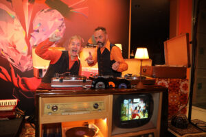 Bij vinyl DJ huren Groningen krijg je meer dan muziek: we komen gekleed in stijl, met ons iconische jaren zestig DJ-meubel, sfeervolle lampjes, kleedjes en tierelantijntjes. Oude TV-beelden op ons audiomeubel (inclusief nostalgische filmpjes van toen er nog maar twee zenders waren)